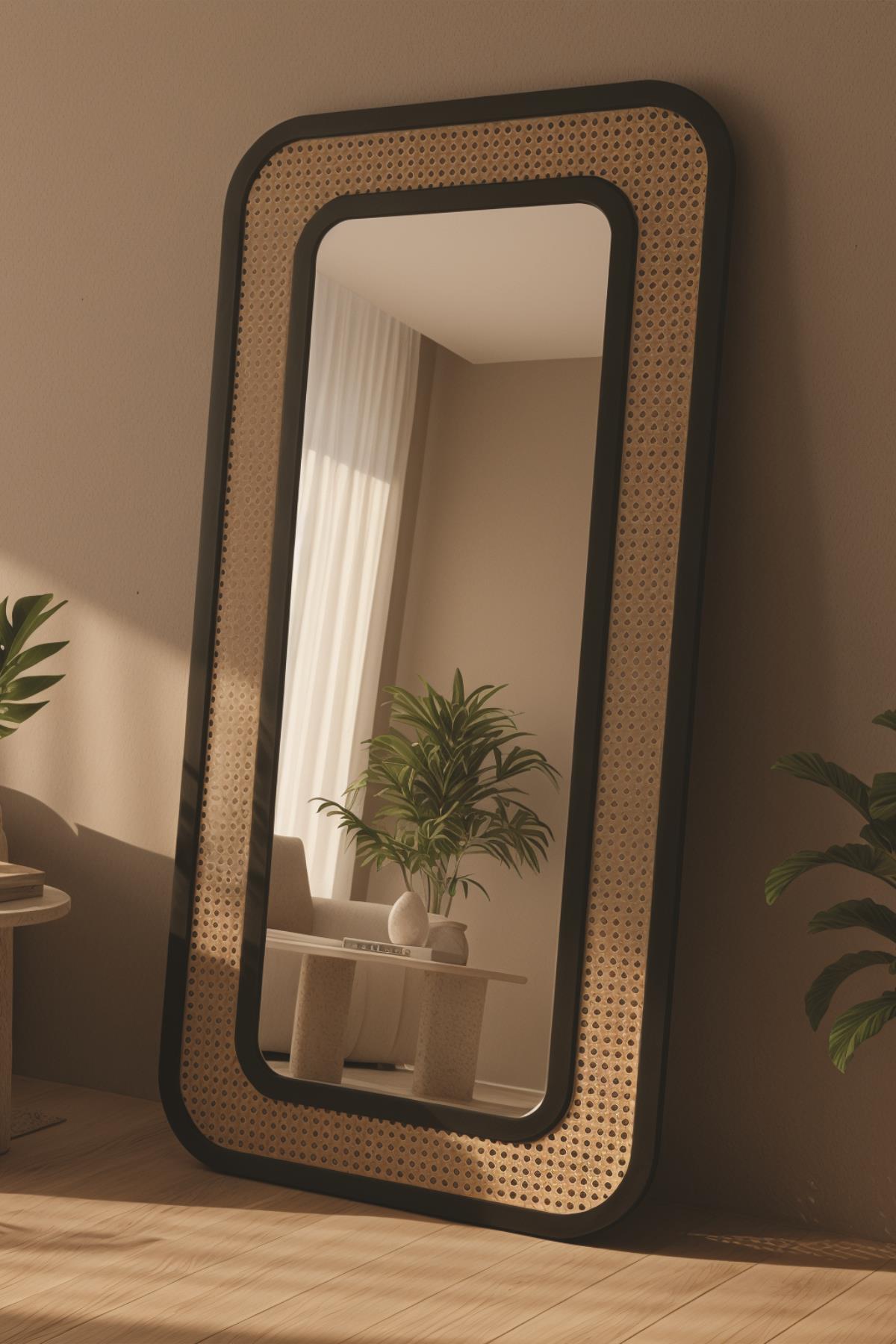 Rattan Ova Köşeli Boy Aynası, özgün ve modern tasarım diliyle yaşam alanlarına estetik bir dokunuş ekler. Formu, malzemesi ve duruşuyla hem dekoratif hem fonksiyonel bir tamamlayıcıdır.